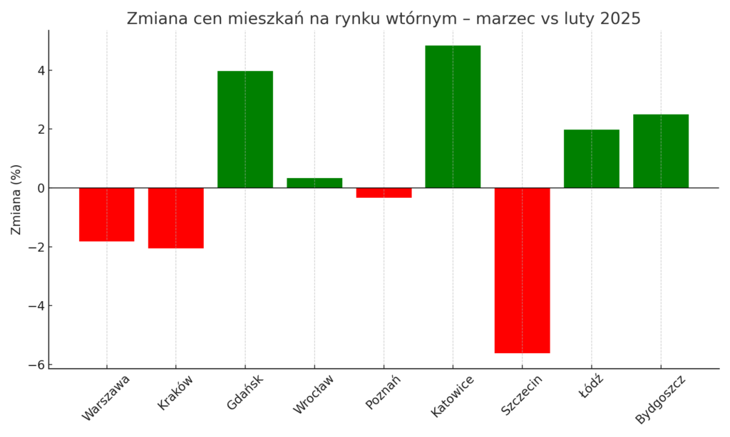 Raport z rynku wtórnego – marzec 2025: spowolnienie w dużych miastach, wzrosty na Śląsku